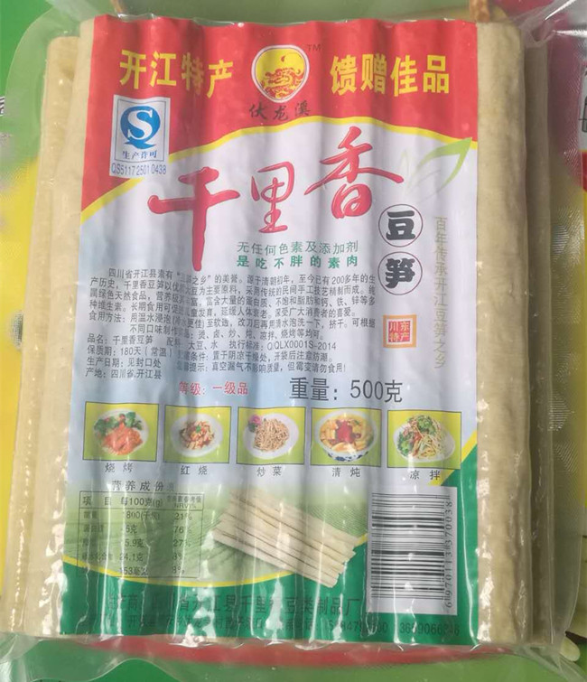 产品介绍:四川省开江县素有“豆笋之乡”的美誉。源于清朝初年,至今有200多年的生产历史,千里香豆笋以******大豆为主要原料,采用传统的民间手工技艺精制而成。纯属绿色天然食品,营养及其丰富,富含大量蛋白质、不饱和脂肪和钙、铁、锌等多种维生素。(无任何色素及添加剂,是吃不胖的素肉),深受广大消费者的喜爱。